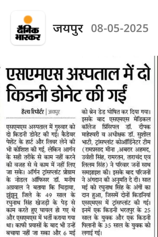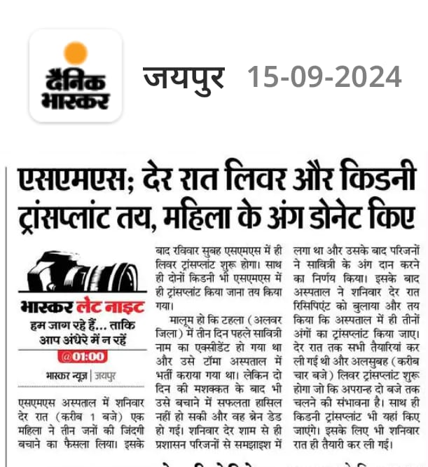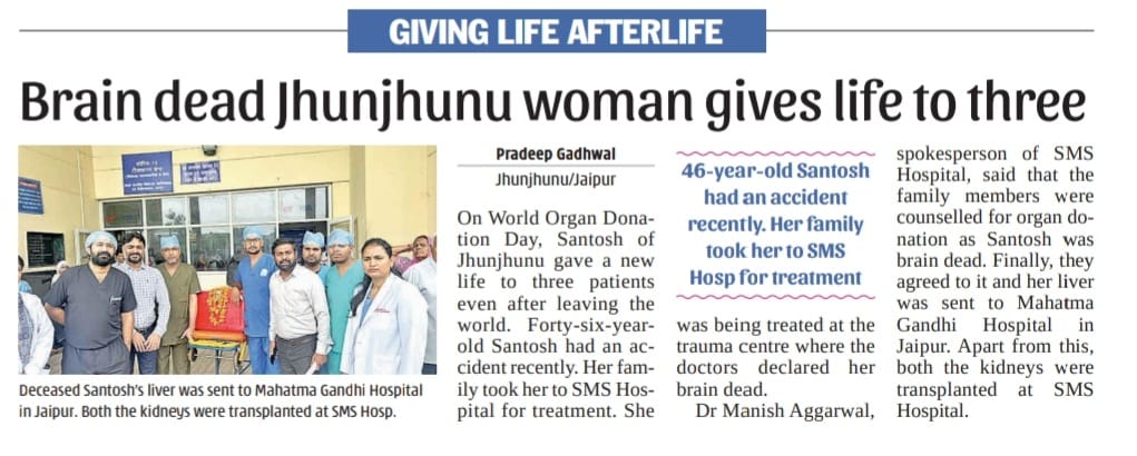 Brain-dead woman’s kidneys, liver give new lease of life to three at SMS hospital |