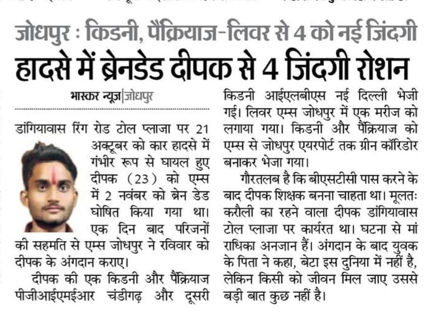 राजस्थान अंगदान में अन्य कई प्रदेशों से बेहतर, पर और सुधार की जरूरत |