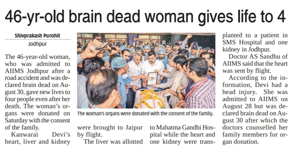 Brain-dead woman’s kidneys, liver give new lease of life to three at SMS hospital Jaipur |